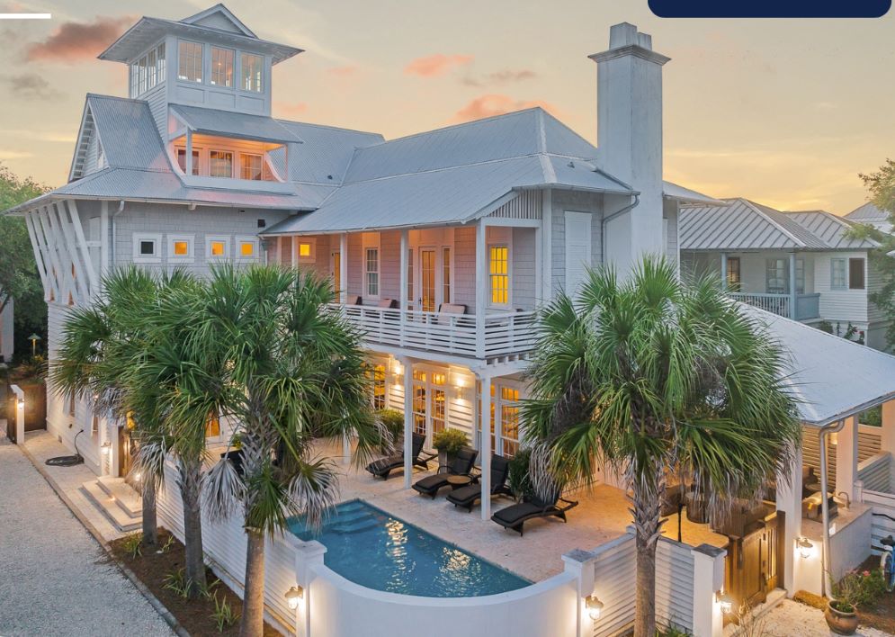 Enjoy 6 days, 7 nights in a luxurious Rosemary Beach retreat. St. Ivory is a custom 5-bedroom, 5.5-bath tower home designed for gathering. A private gated courtyard features a heated pool, outdoor living area, fireplace, and grill. An observation tower crowns the home with 360° Gulf and Rosemary Beach views.